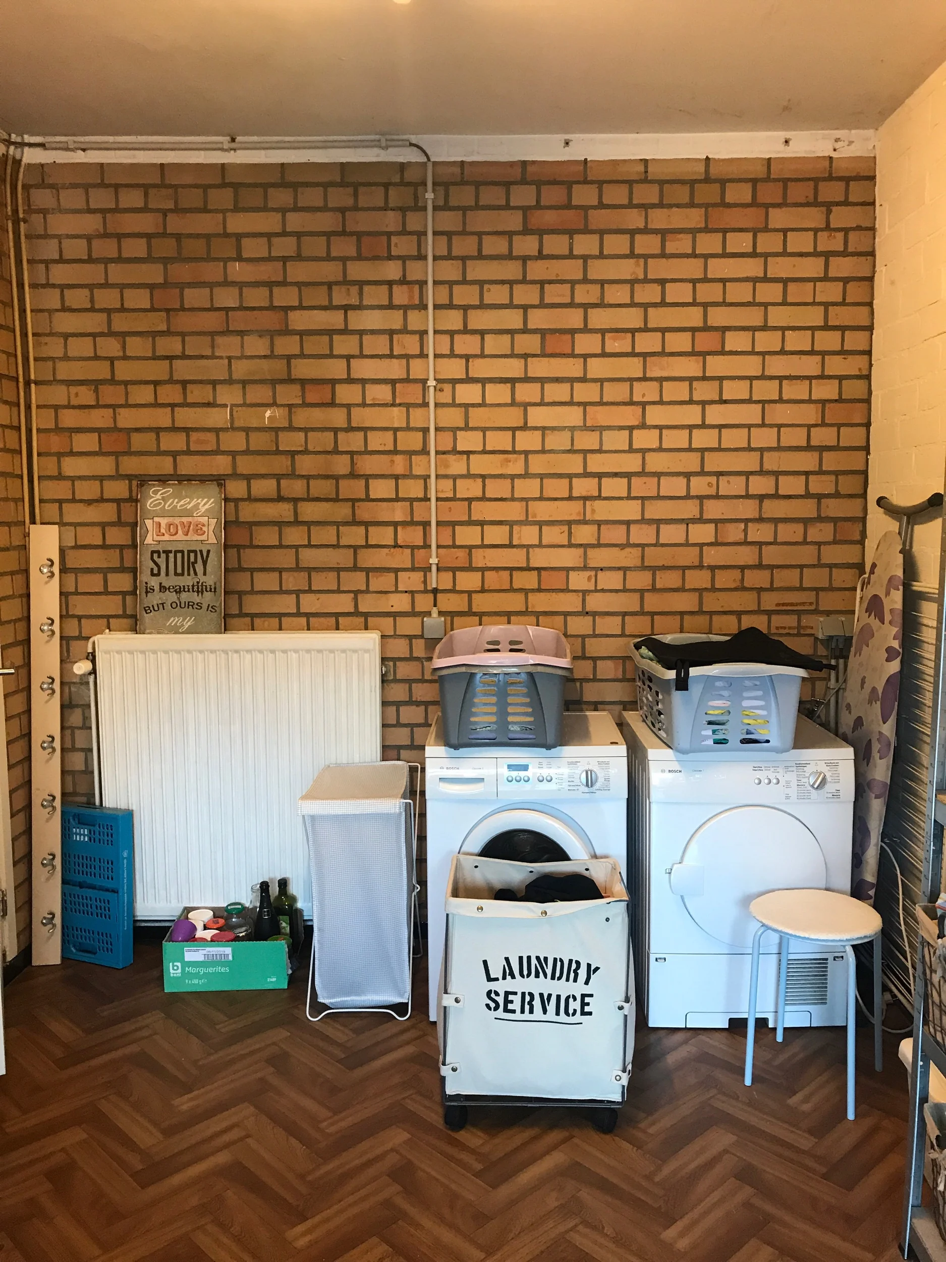 I do all the washing in the garage which we don’t use to park the cars but as storage/laundry room. I had been itching to take on the laundry corner for ever and now that we’re expecting our third baby soon, nesting took over and I wanted it done … yesterday! You know how important newborns find organized laundry stations right?