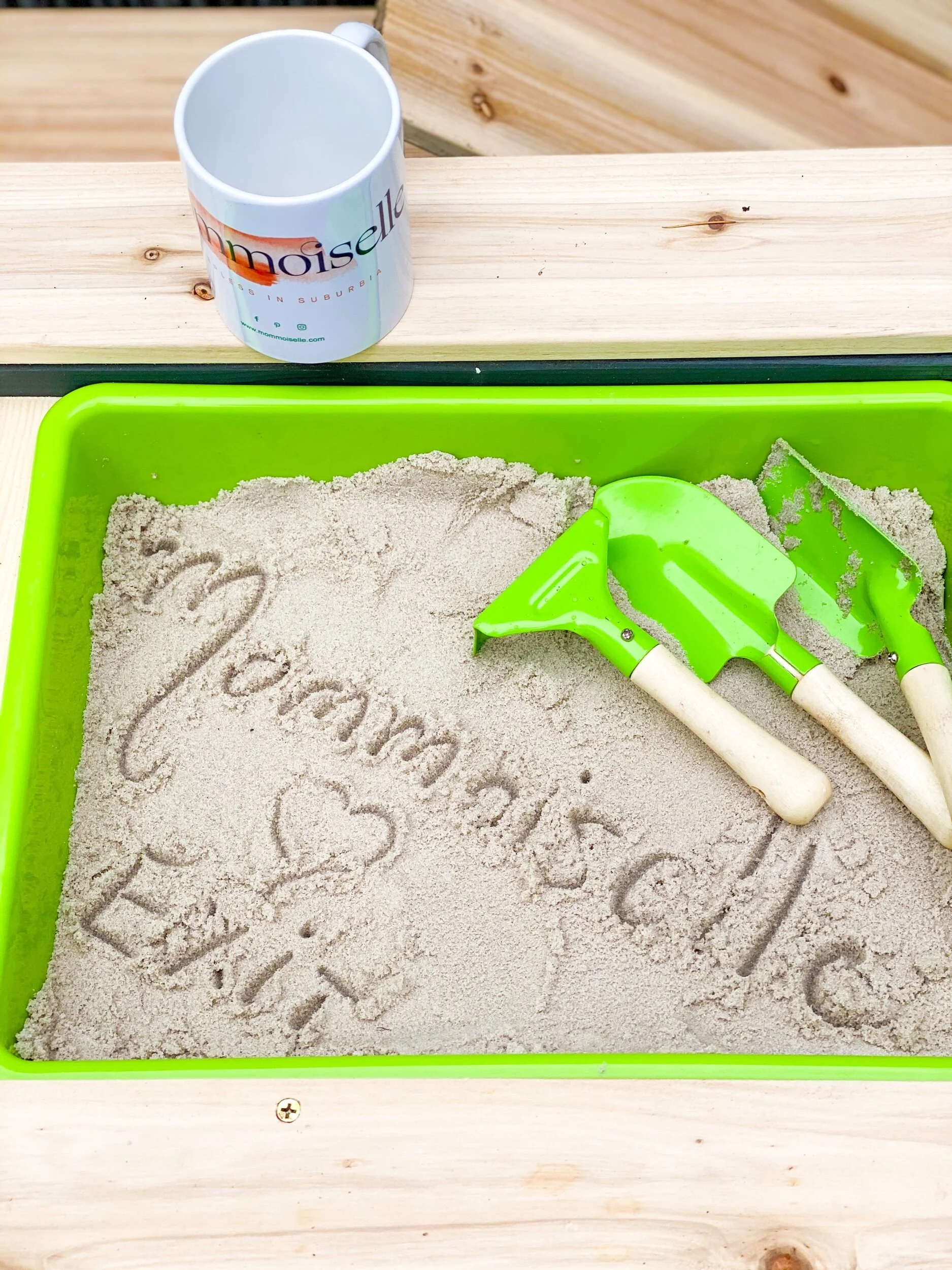 Elliot en Amelia hebben al zo’n pret beleefd aan dit tafeltje en komen zelf met ideetjes. Zo vindt Elliot (4,5) het fantastisch om na te gaan welke speeltjes drijven en welke zinken en Amelia vond het gisteren fijn om het vuile zand van onze tuin in het water te scheppen, daar autootjes door te roeren en ze dan proper te maken in het andere bakje. Pre-corona had ik even geslikt, als ze me nu vragen “mama, mag ik een put in de tuin graven”, zeg ik “doe maar, schatjes”!